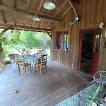 Η Wooden House Βίλα Uzeste διαθέτει βεράντα με πισίνα.